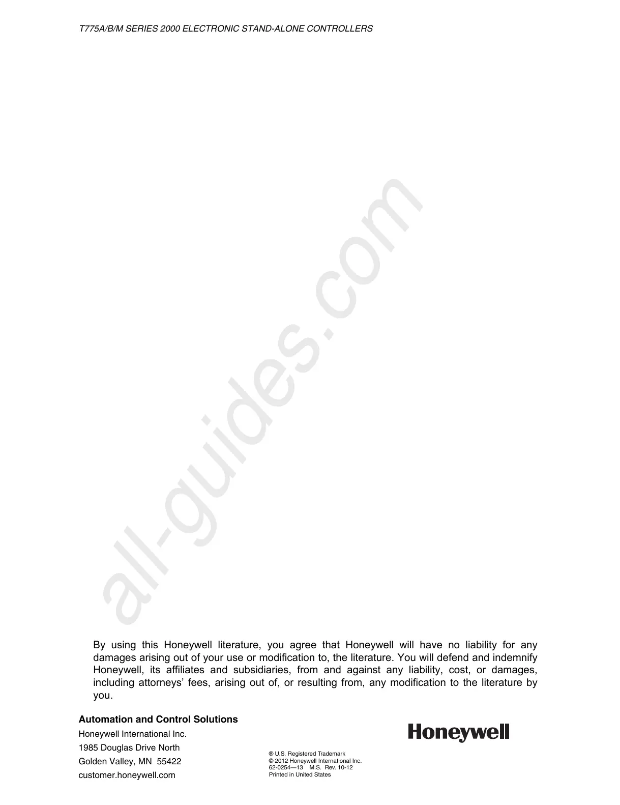 By using this Honeywell literature, you agree that Honeywell will have no liability for any