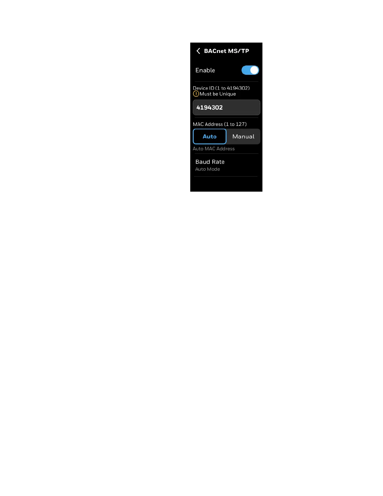 5. The device automatically adapts to the baud rate of the MS/TP network. You can also