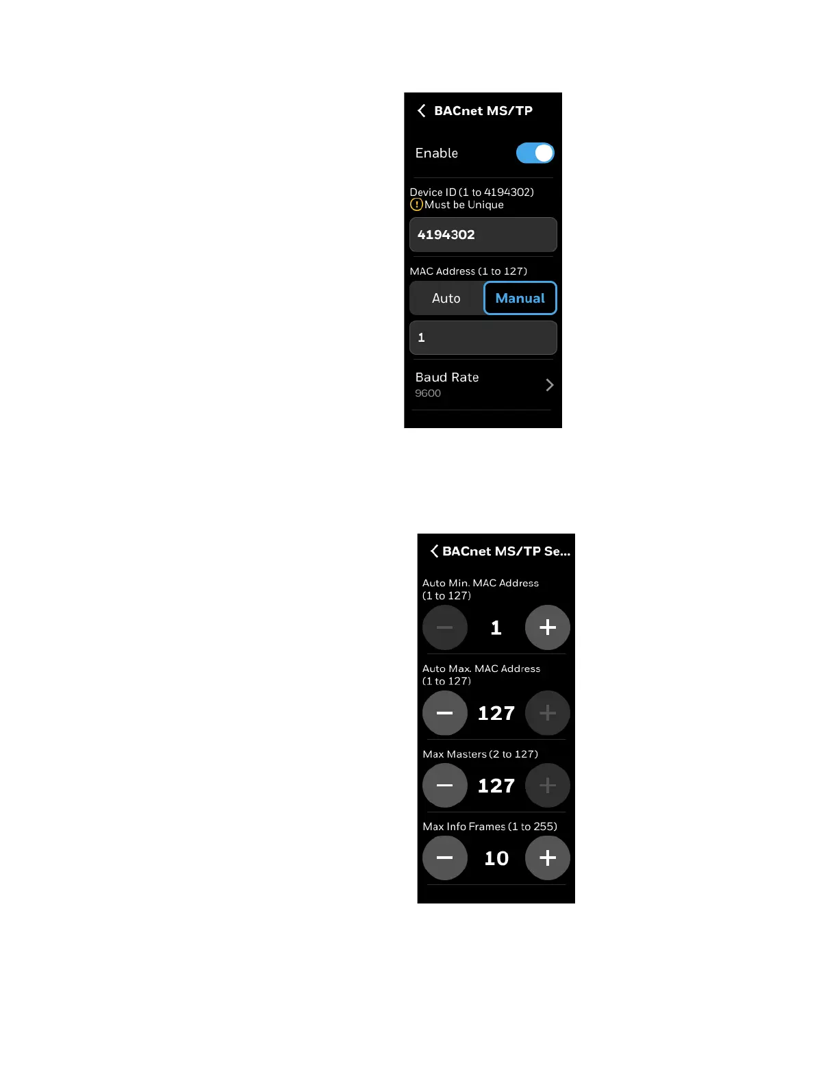 10. Tap the back arrow button to navigate back to BACnet MS/TP setting page.