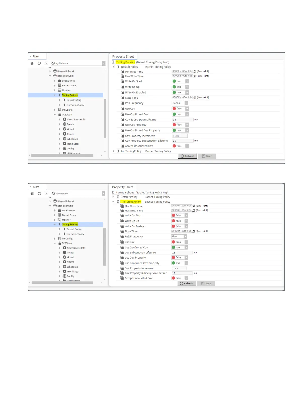 Another way to access these properties is by expanding BacnetNetwork > Tuning