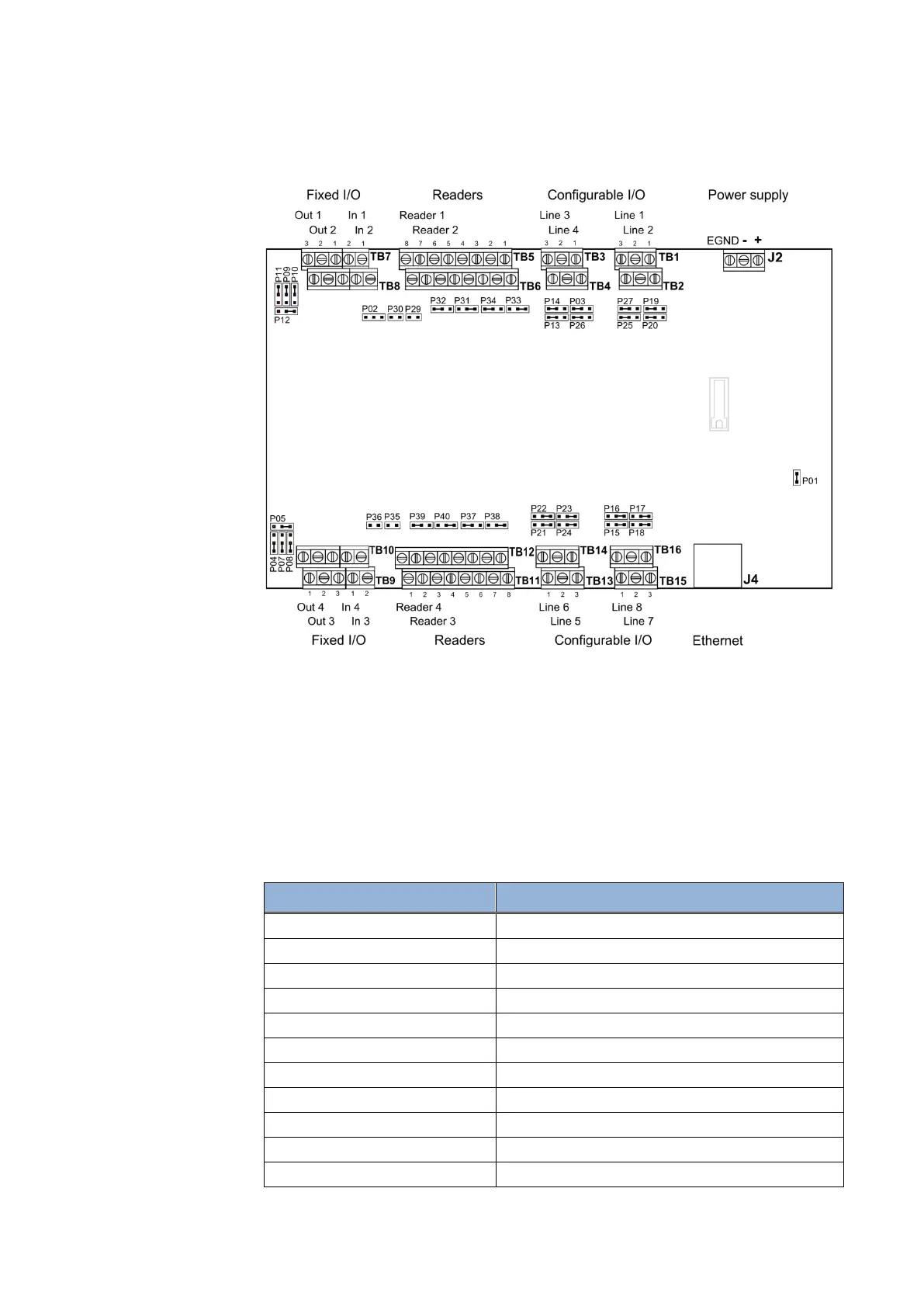 The below table lists the terminal blocks and explain their meaning.