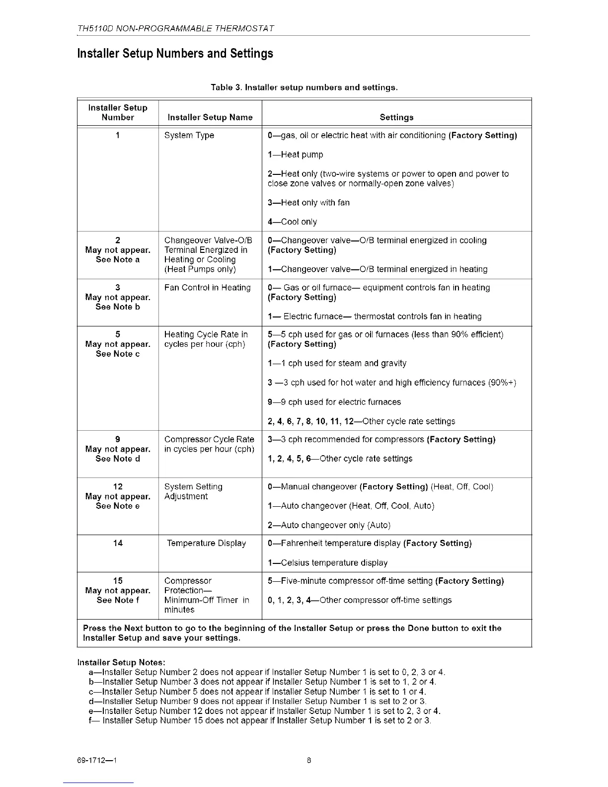 d--Installer Setup Number 9 does not appear if Installer Setup Number 1 is set to 2 or 3.
