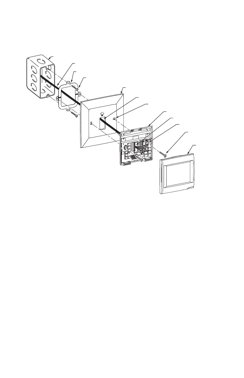 Fig. 3. Mount bracket, cover plate, wall plate and thermostat to a vertical 2 in. X 4 in. electrical box.
