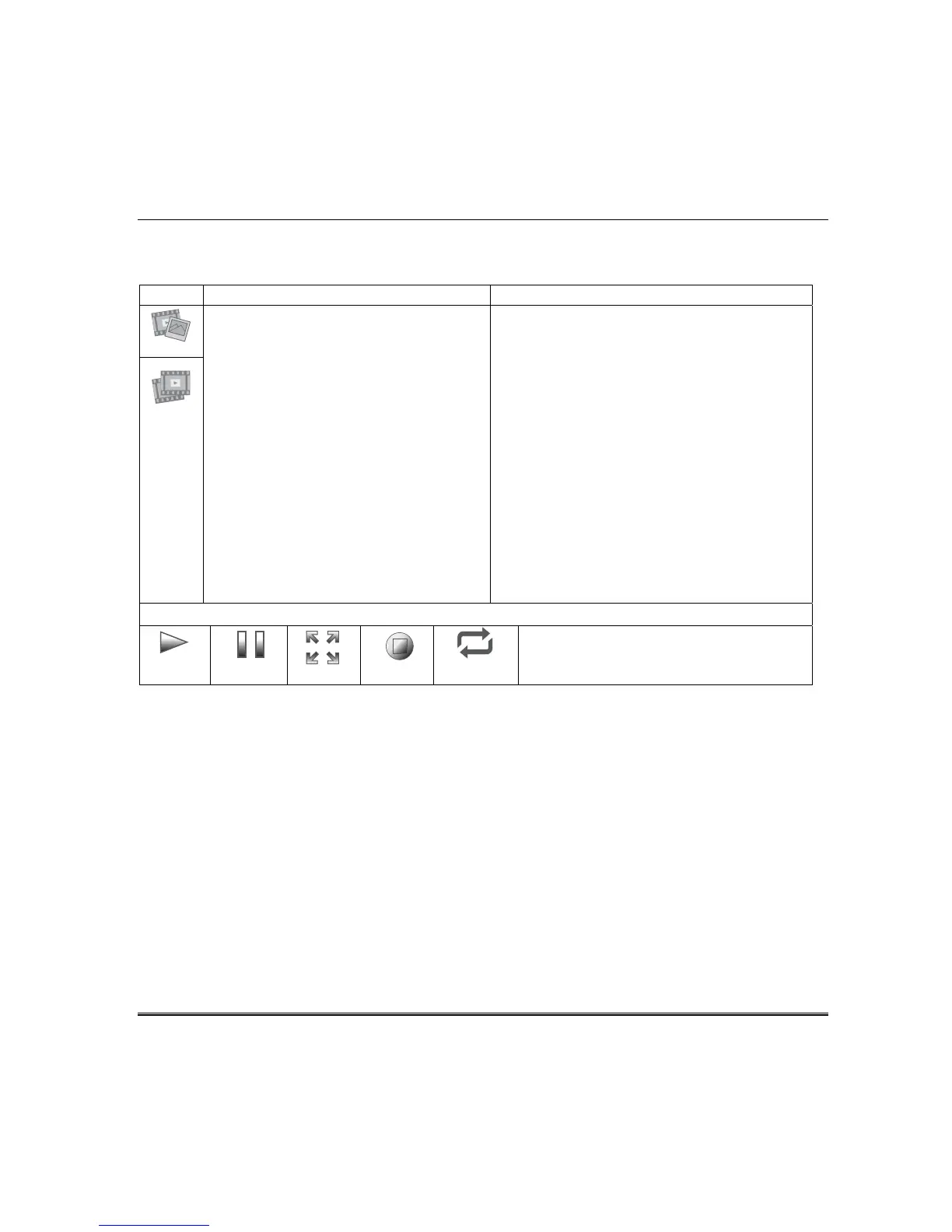 Press the appropriate icon to Play, Pause, view a