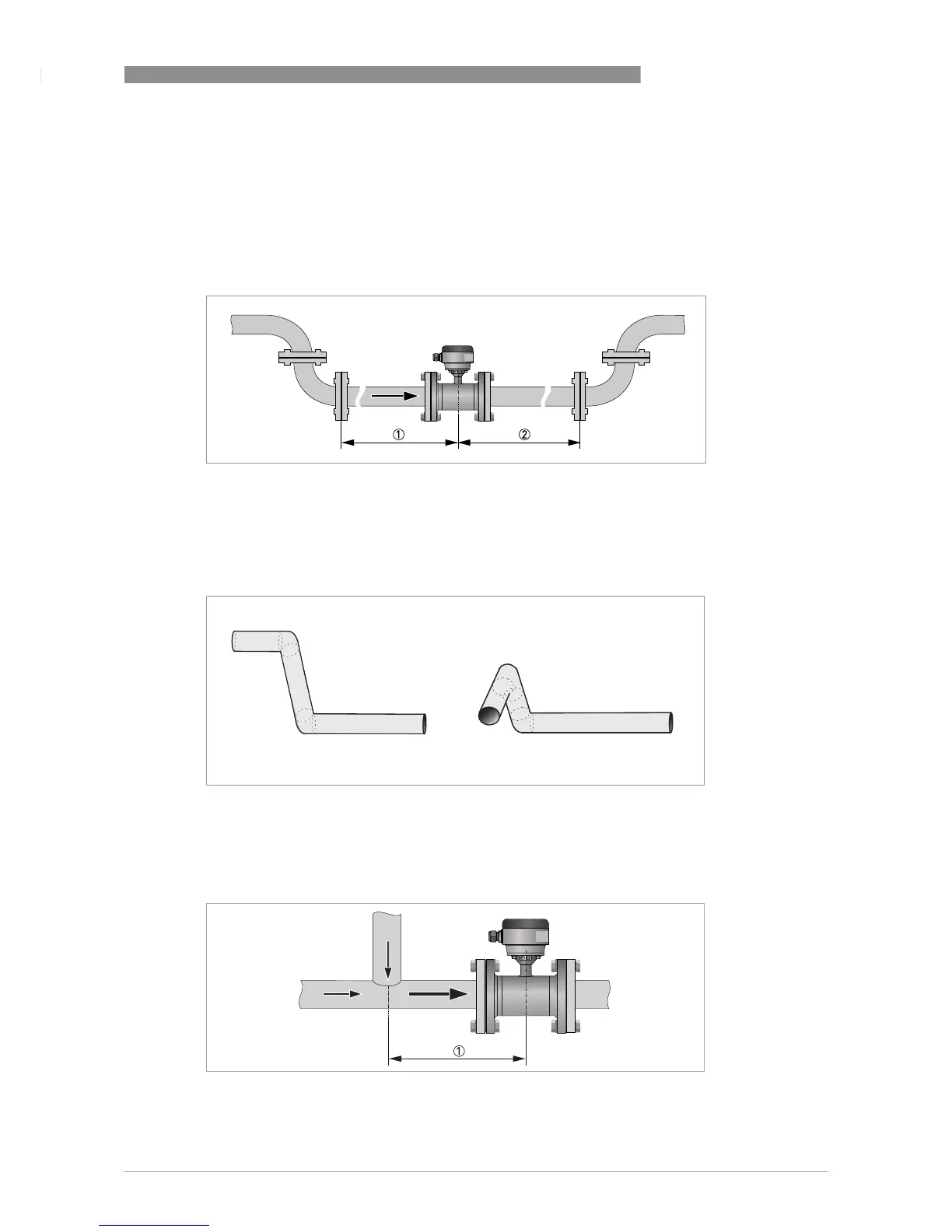 1 Bends in 2 dimensions: ≥ 5 DN; bends in 3 dimensions: ≥ 10 DN