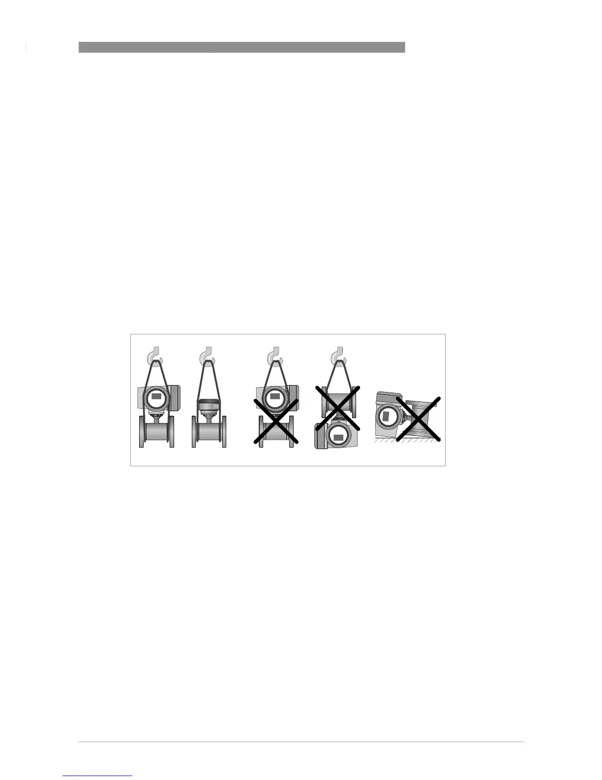 • To transport flange devices, use lifting straps. Wrap these around both process connections.