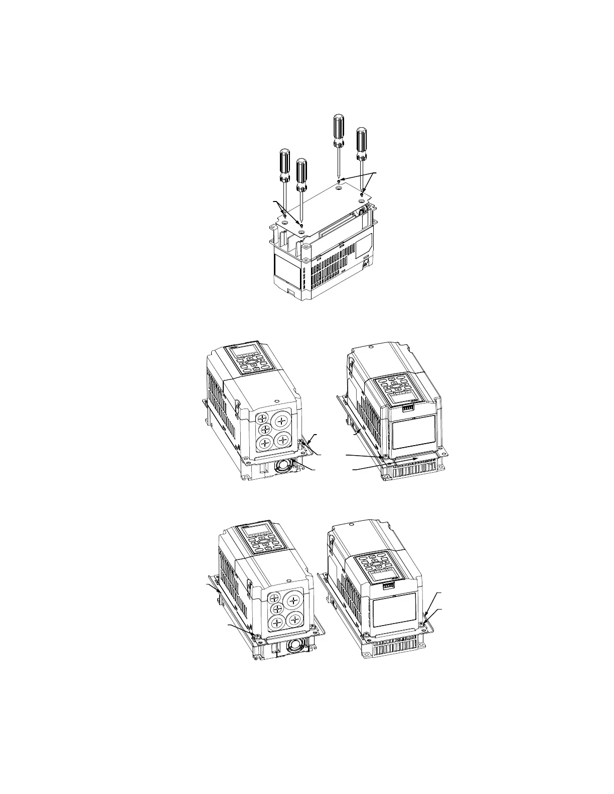 1. Install mounting plate by using 4 screws (M3). Screw torque: 6~8kg-cm (5.21~6.95Ib-in).