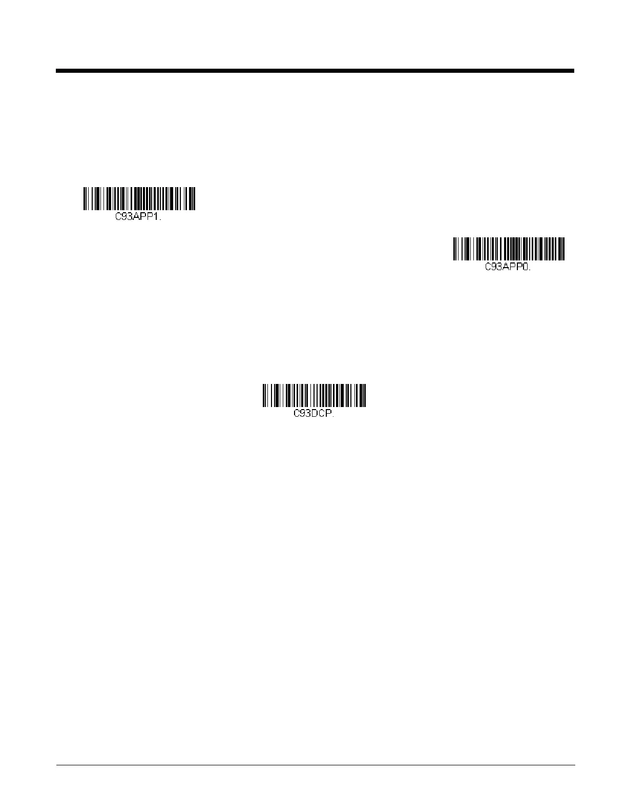 This function allows the scanner to append the data from several Code 93 bar codes together before transmitting them to