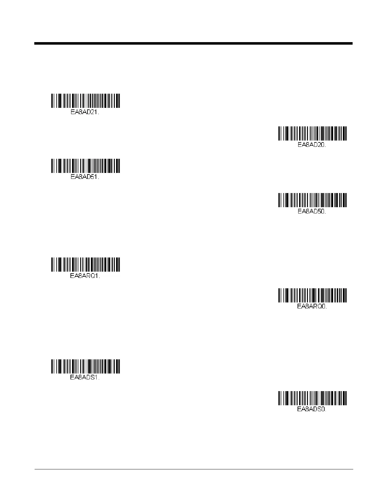 When Required is scanned, the scanner will only read EAN/JAN-8 bar codes that have addenda. Default = Not Required.
