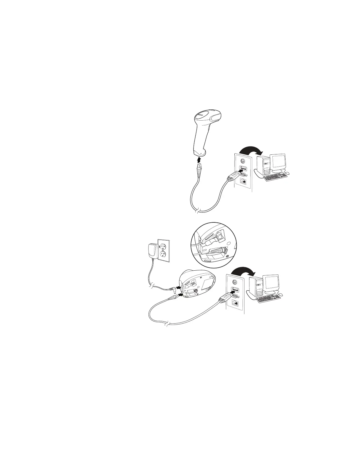 A scanner or a cordless base can be connected to the USB port of a computer.