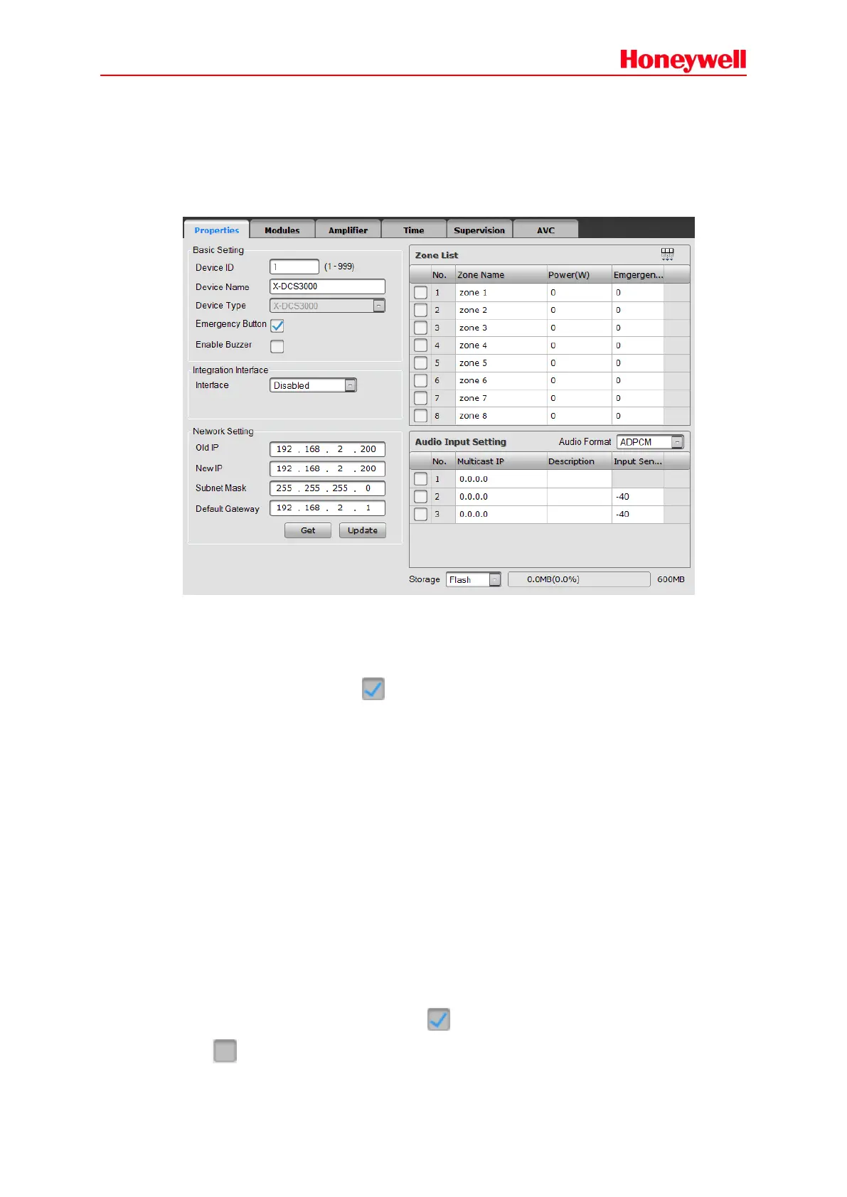 “Properties” is used to set the requisite parameters for the X-DCS3000, as shown below: