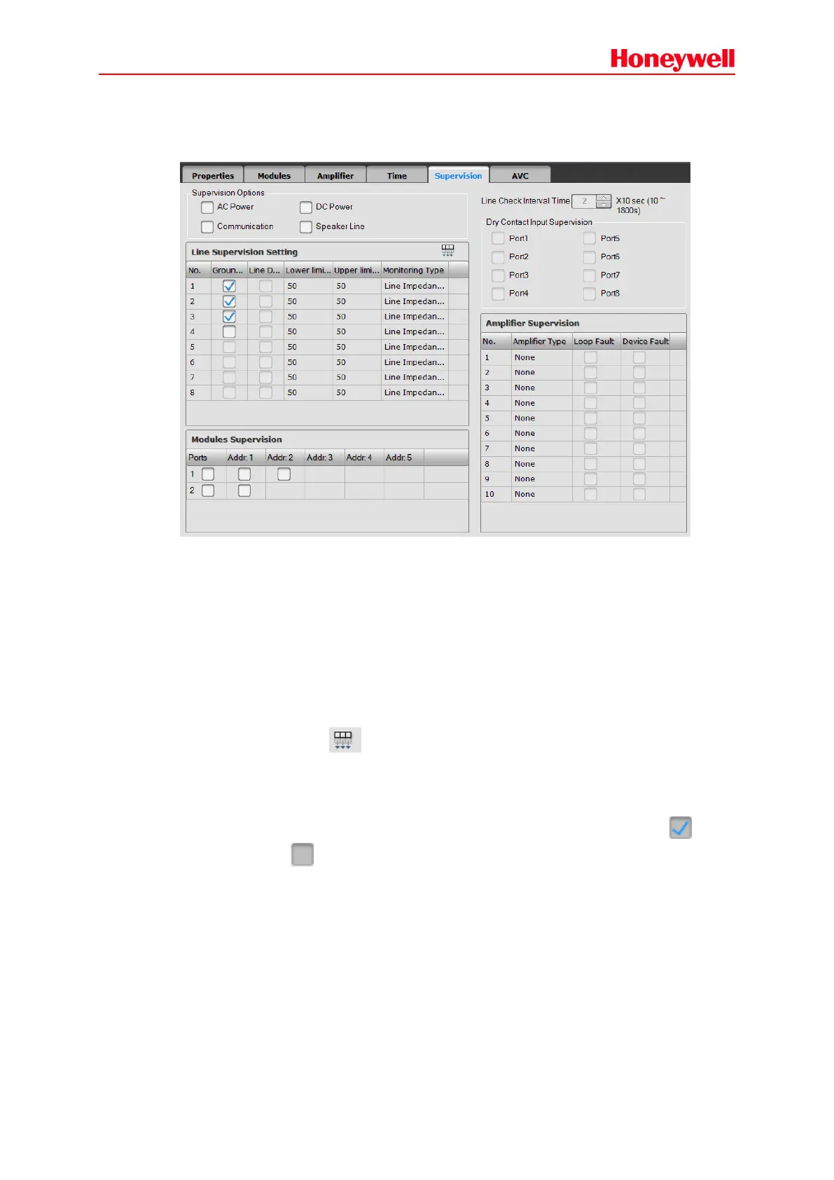 check-boxes are used to enable or disable line supervision. Check box which shown as