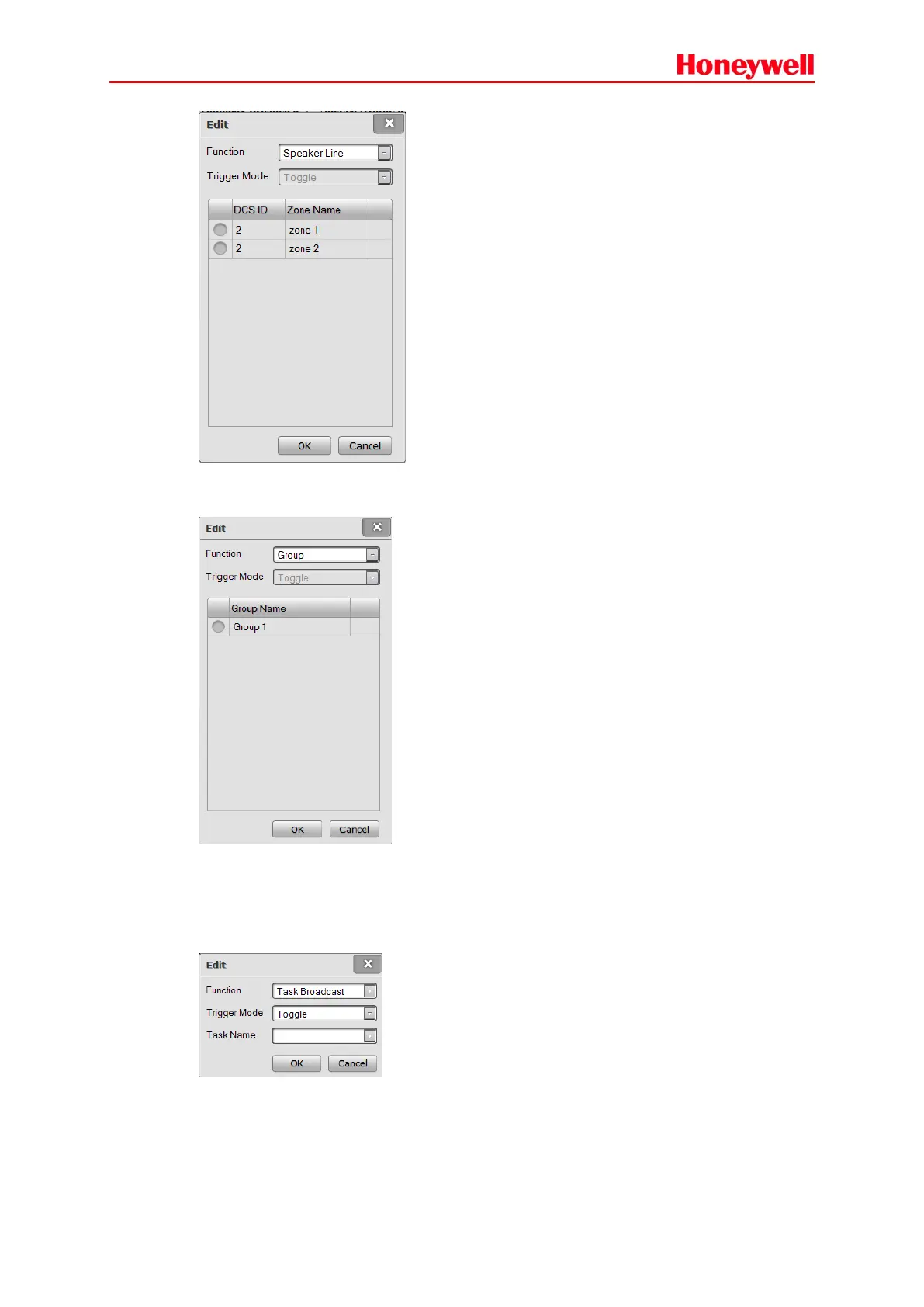 Toggle or press can be selected in task broadcast function. Toggle means click once to start task
