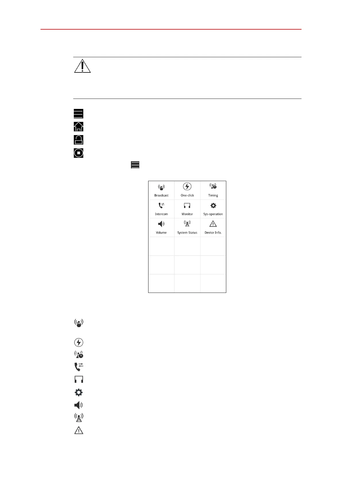 Intercom: Click to comminicate with other devices, such as X-NPMS or X-NPMIC.