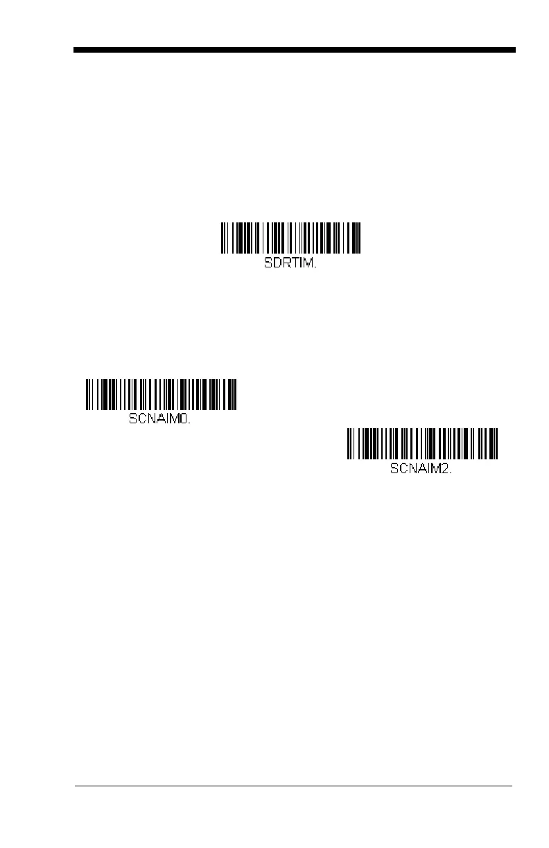 0, or no timer. Scan Scanner Time-Out, then set the time-out by scanning dig-