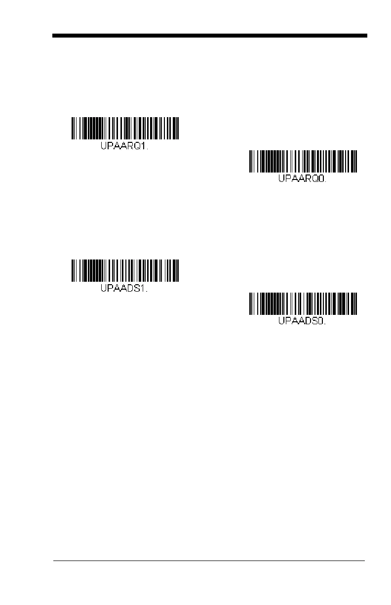 Use the following codes to enable or disable UPC-A and EAN-13 with Extended