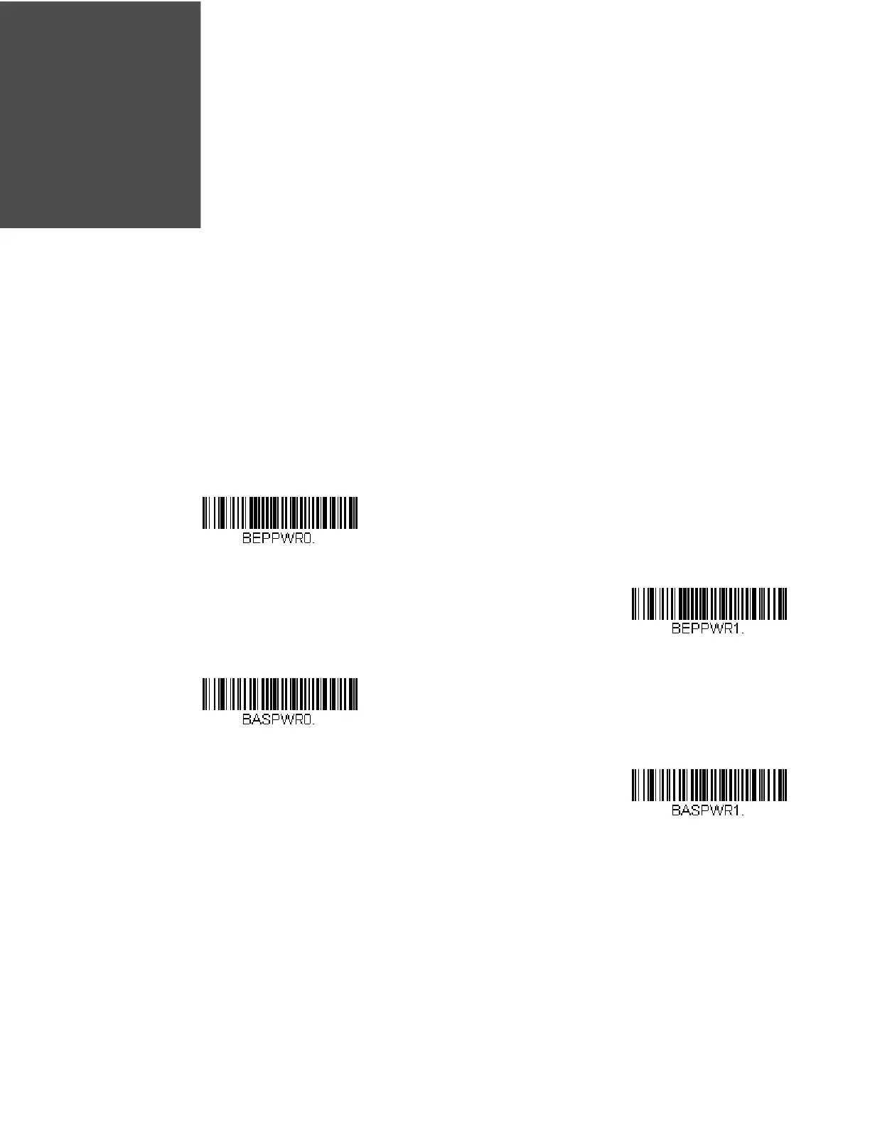 Scan the Off bar code(s) if you don’t want a power up beep. Default = Power Up