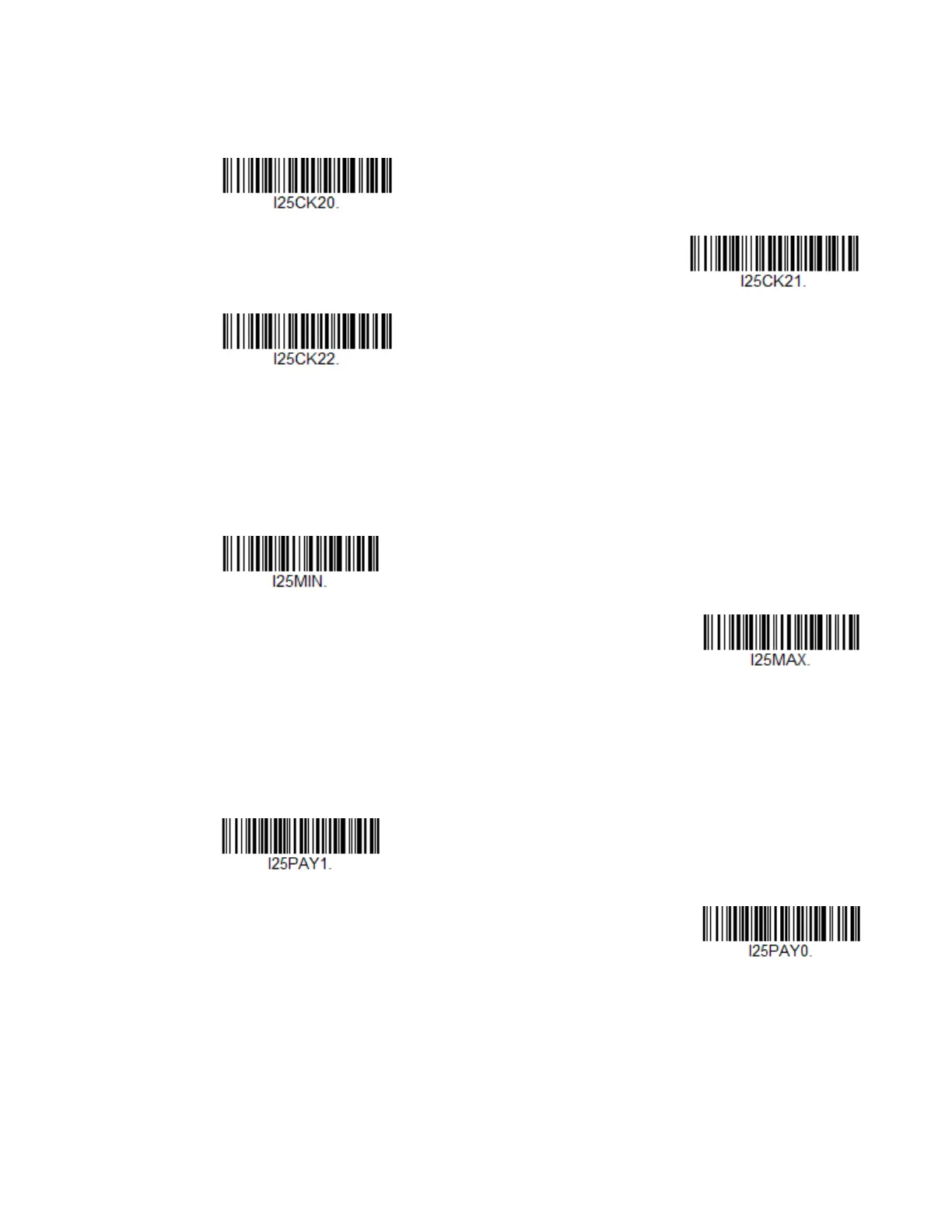 Scan the barcodes below to change the message length. Refer to Message Length