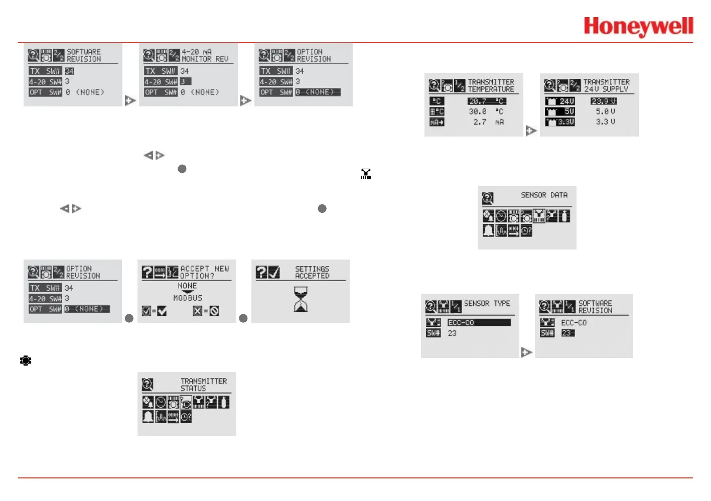 Figure 166. Transmitter Software, 4-20 Monitor and Option Version screens