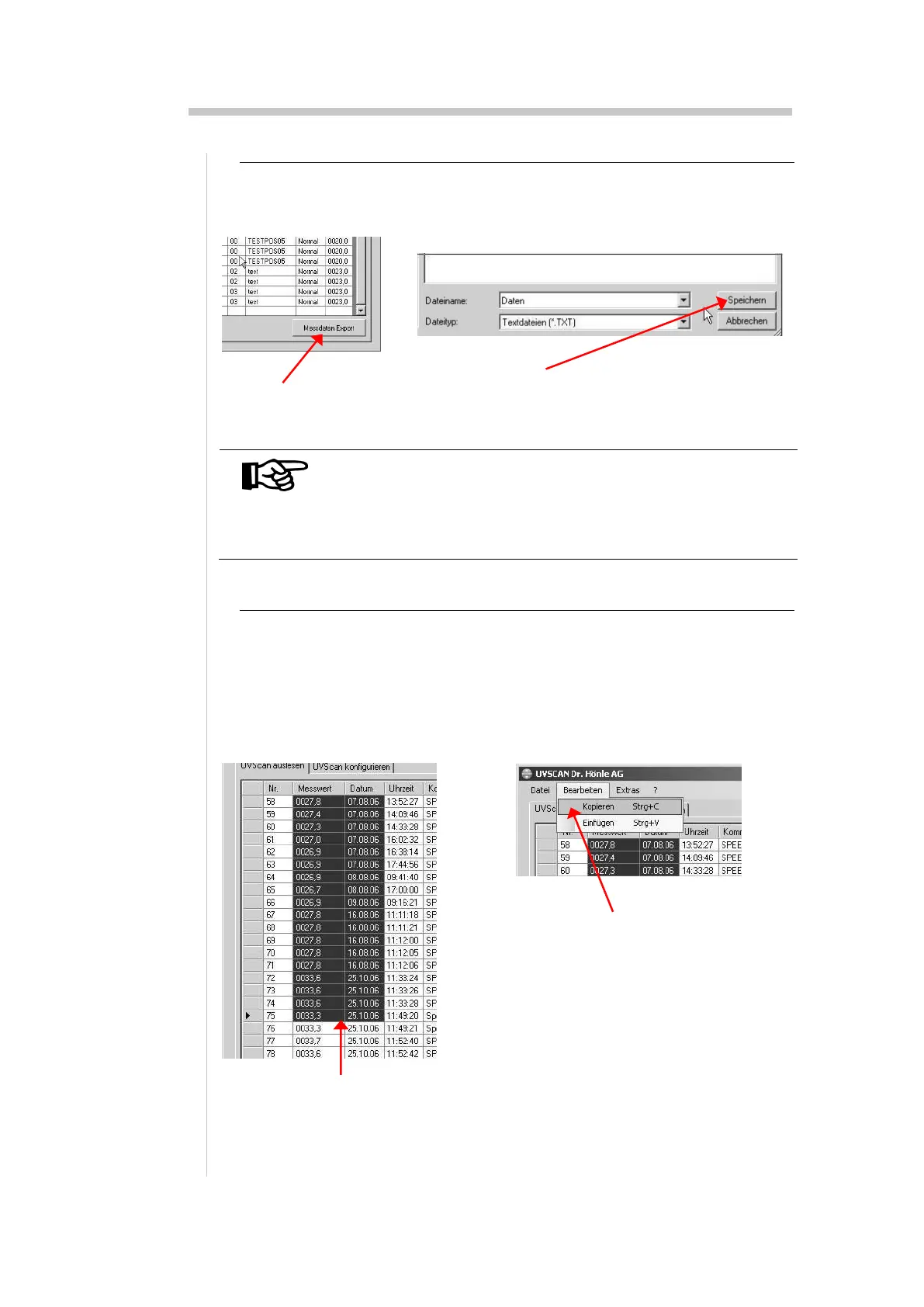 Die übertragenen Messwerte können auch über die Zwischenablage in an-