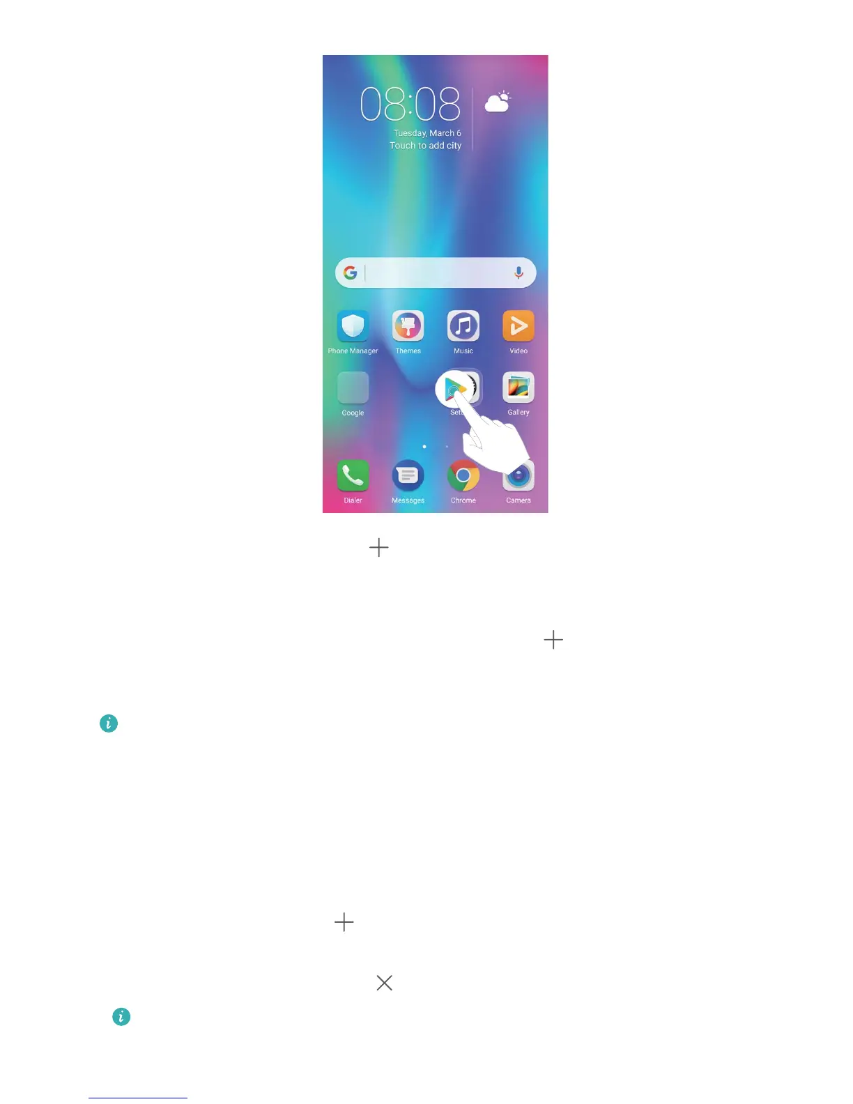 Touch and hold an empty area on the home screen to enter home screen editing mode. You can do