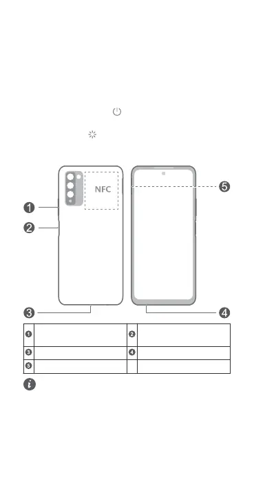 • To power on your device, press and hold the power
