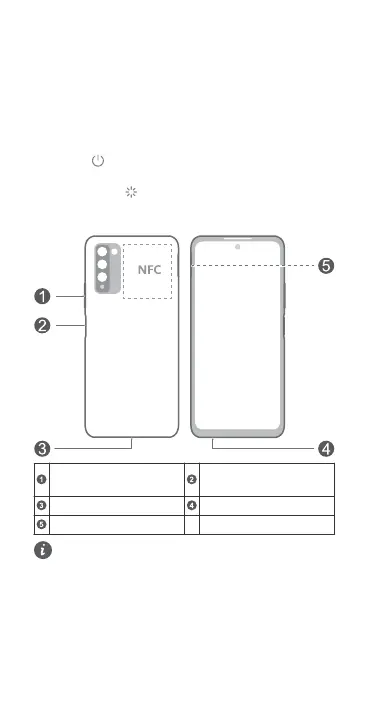 • For å slå på enheten trykk og hold strømknappen nede