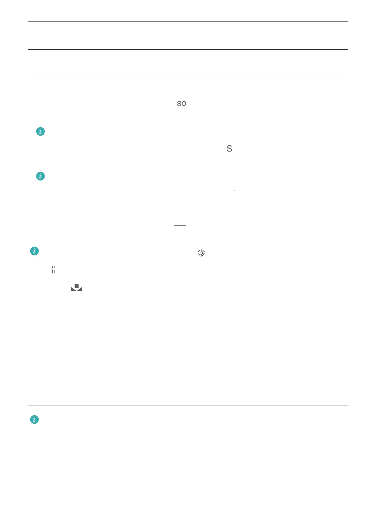 l Adjust ISO: On the Pro mode screen, touch , and swipe left or right on the ISO slider to adjust