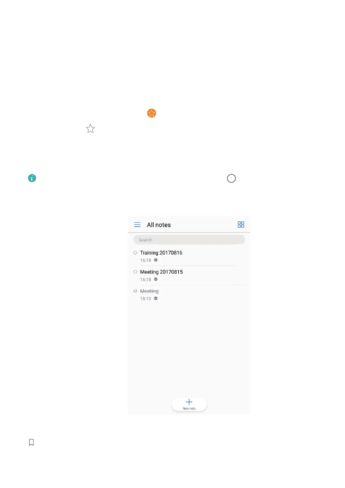 Add a note to favorites: Want to add a note to favorites so you can refer to it later? On the list
