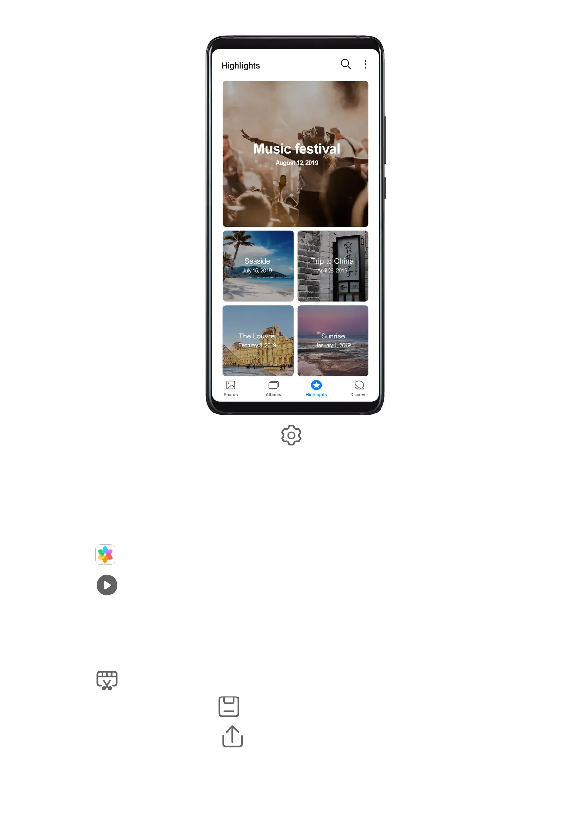 • Highlights albums are created automatically when your device is charging, the screen is