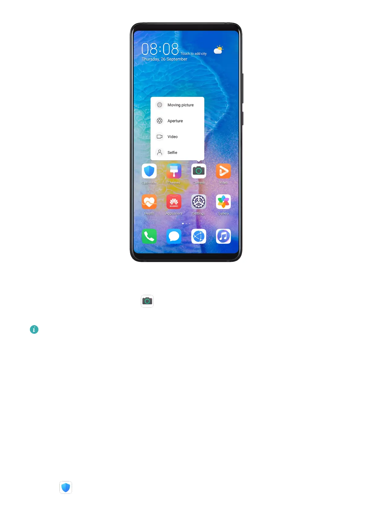 icon, then touch a shooting mode from the pop-up