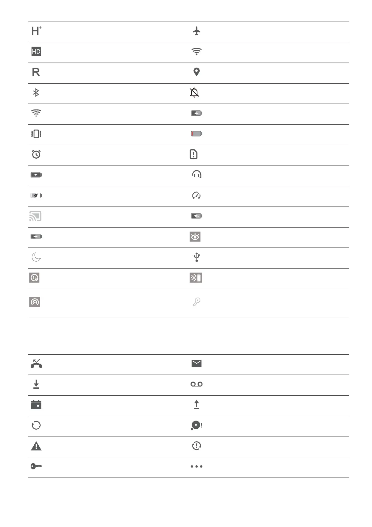 Notication icons: When there is a new message, notication or reminder on your device, the