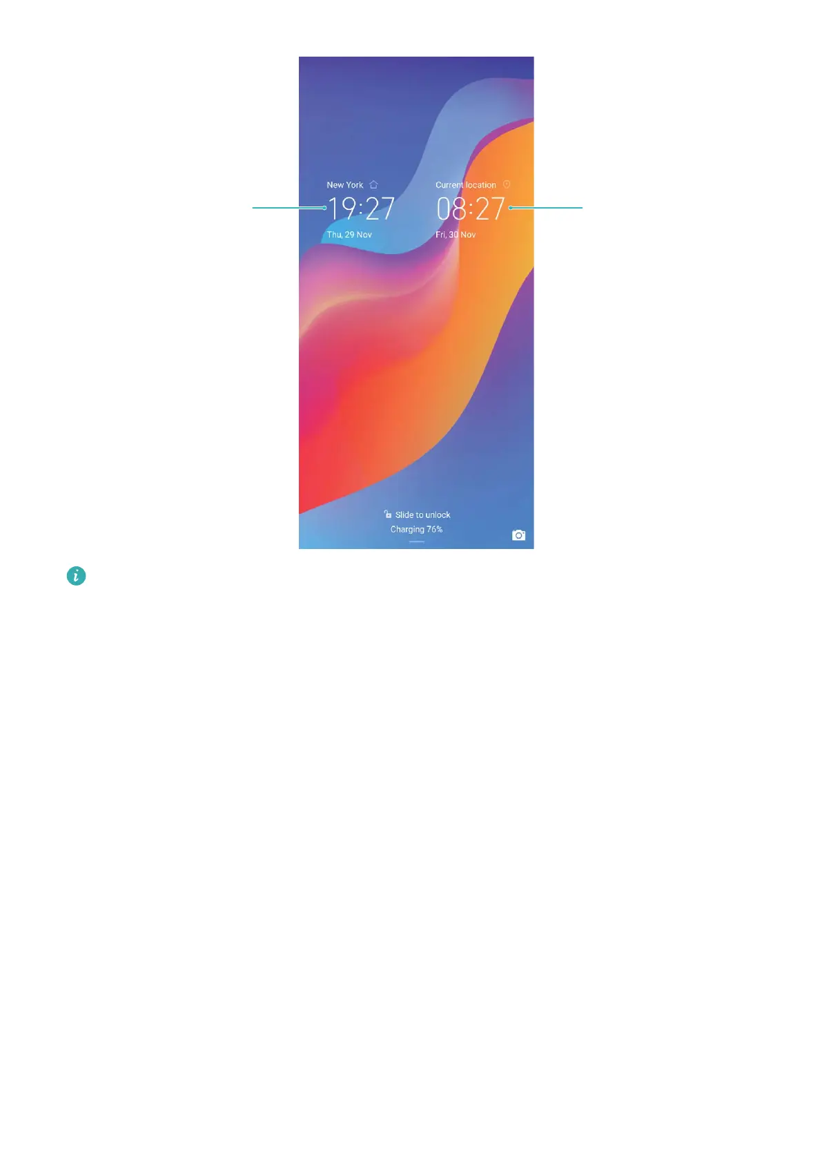 If the time in your current region is the same as that of your home city, the lock screen will only