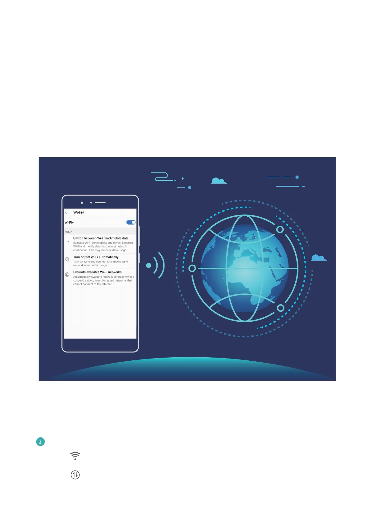 Wi-Fi+ intelligently connects to Wi-Fi networks to save mobile data consumption. When your device
