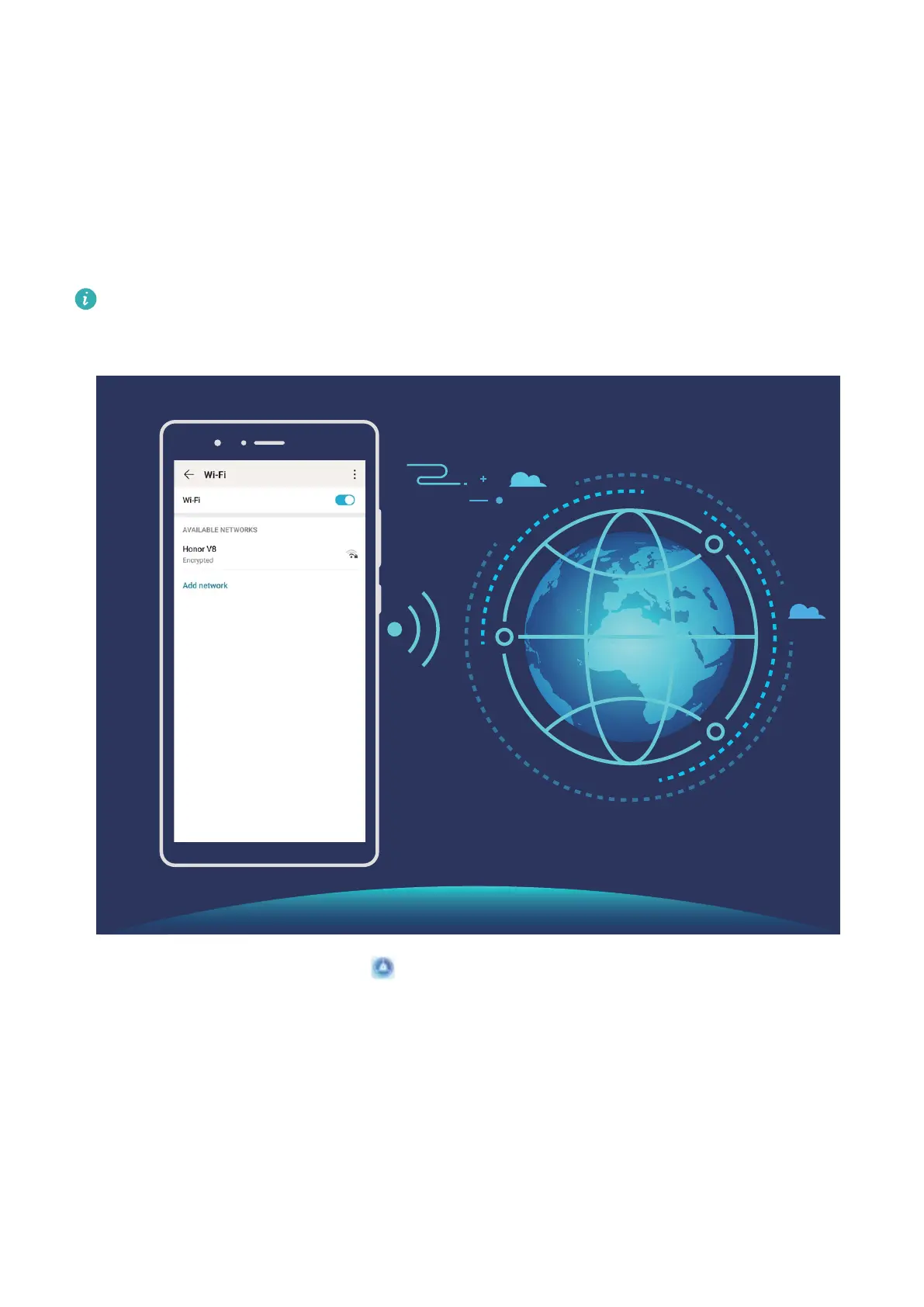 Wi-Fi. Touch a Wi-Fi network to access it, and enter the network password or complete the