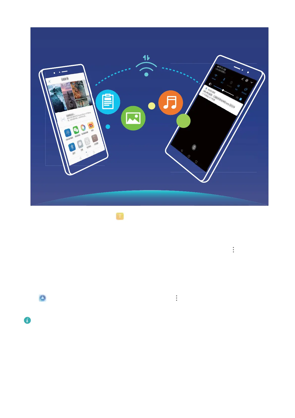 Send les with Wi-Fi Direct: Open Files, touch and hold a le you want to send, and go to