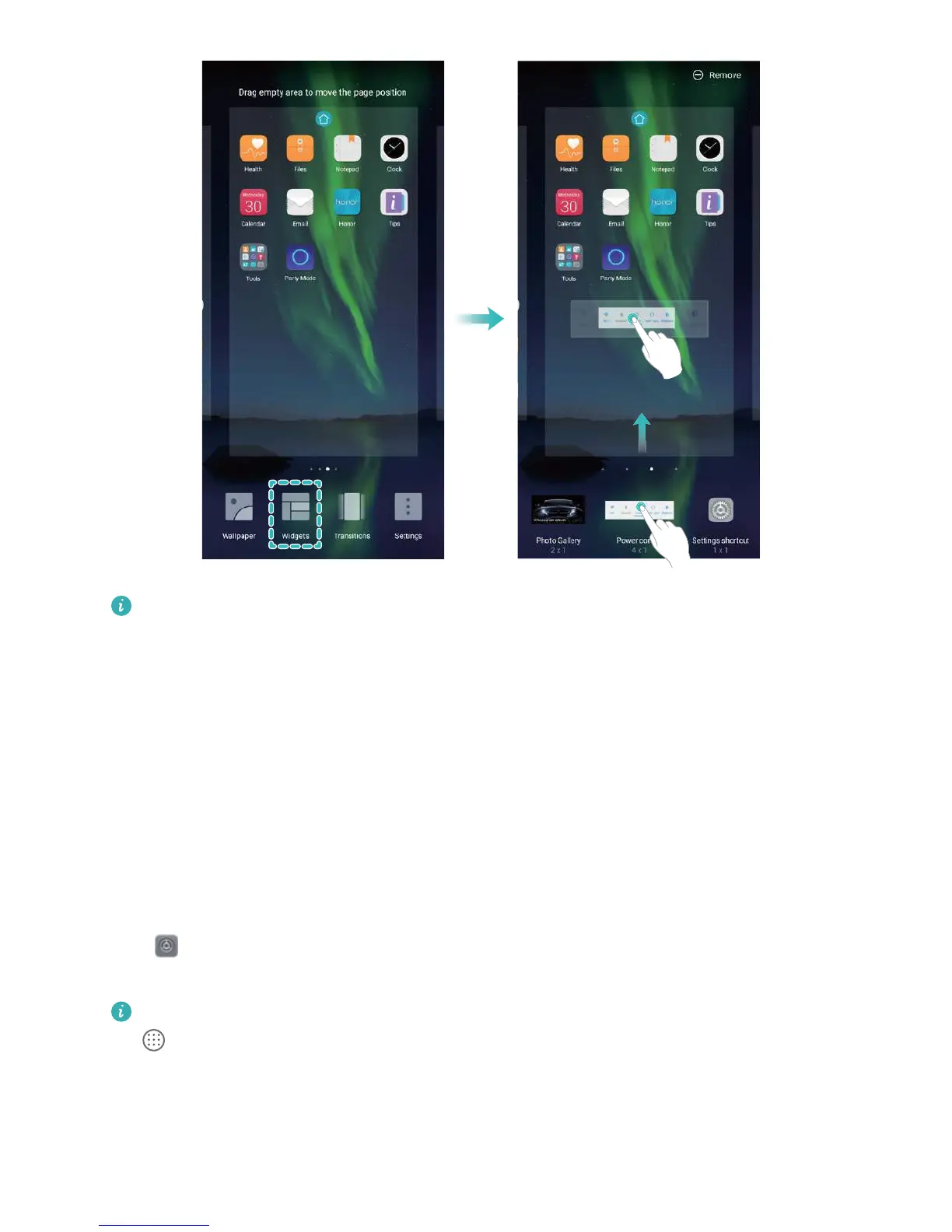 widget to any position on the screen.