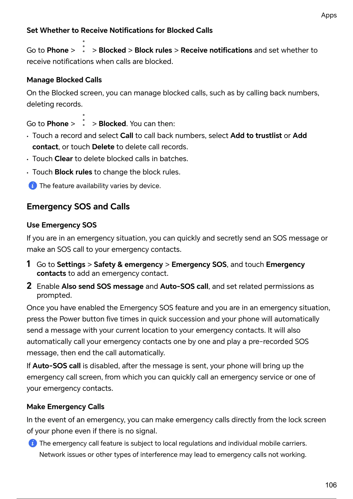emergency call feature is subject to local regulations and individual mobile carriers.