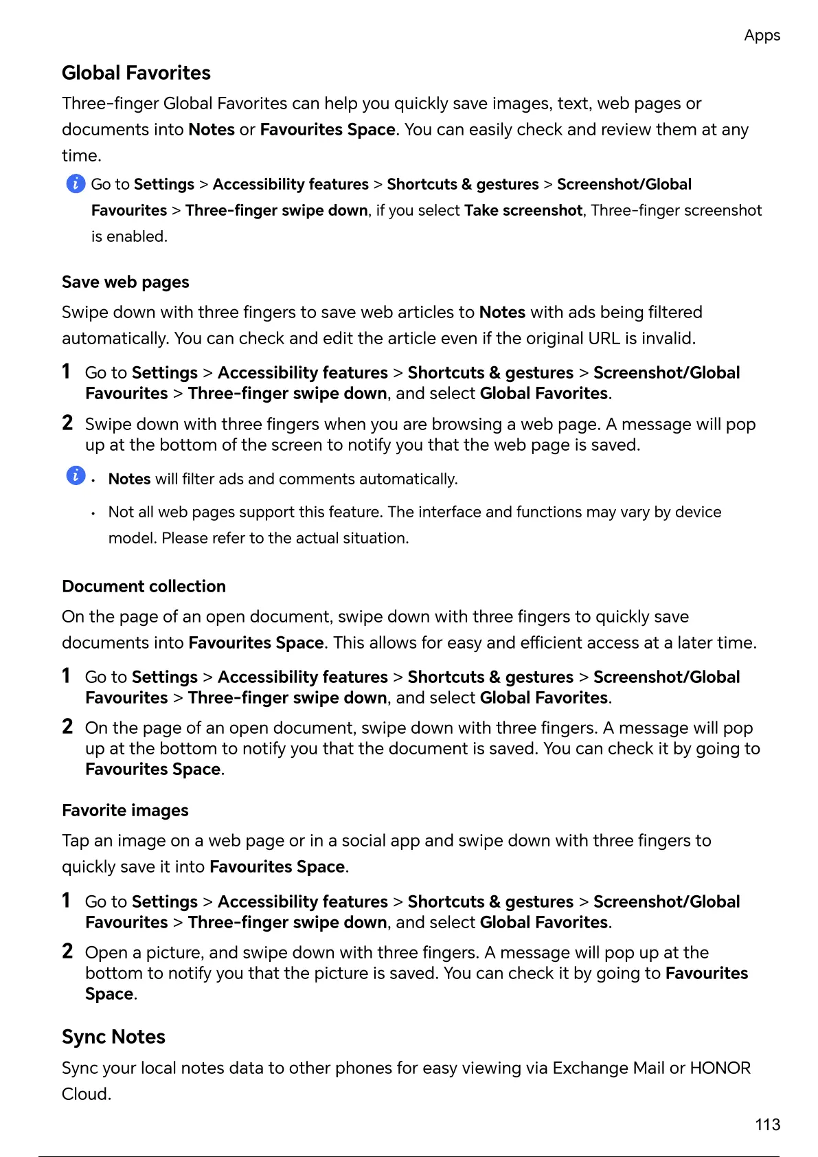 documents into Notes or Favourites Space. You can easily check and review them at any