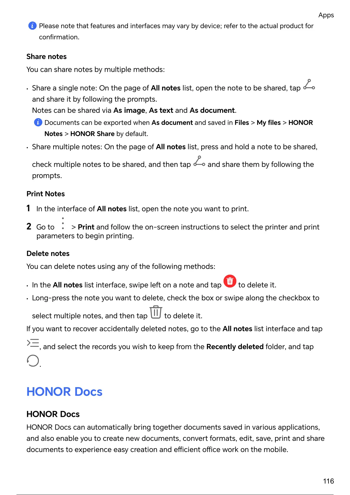 If you want to recover accidentally deleted notes, go to the All notes list and tap