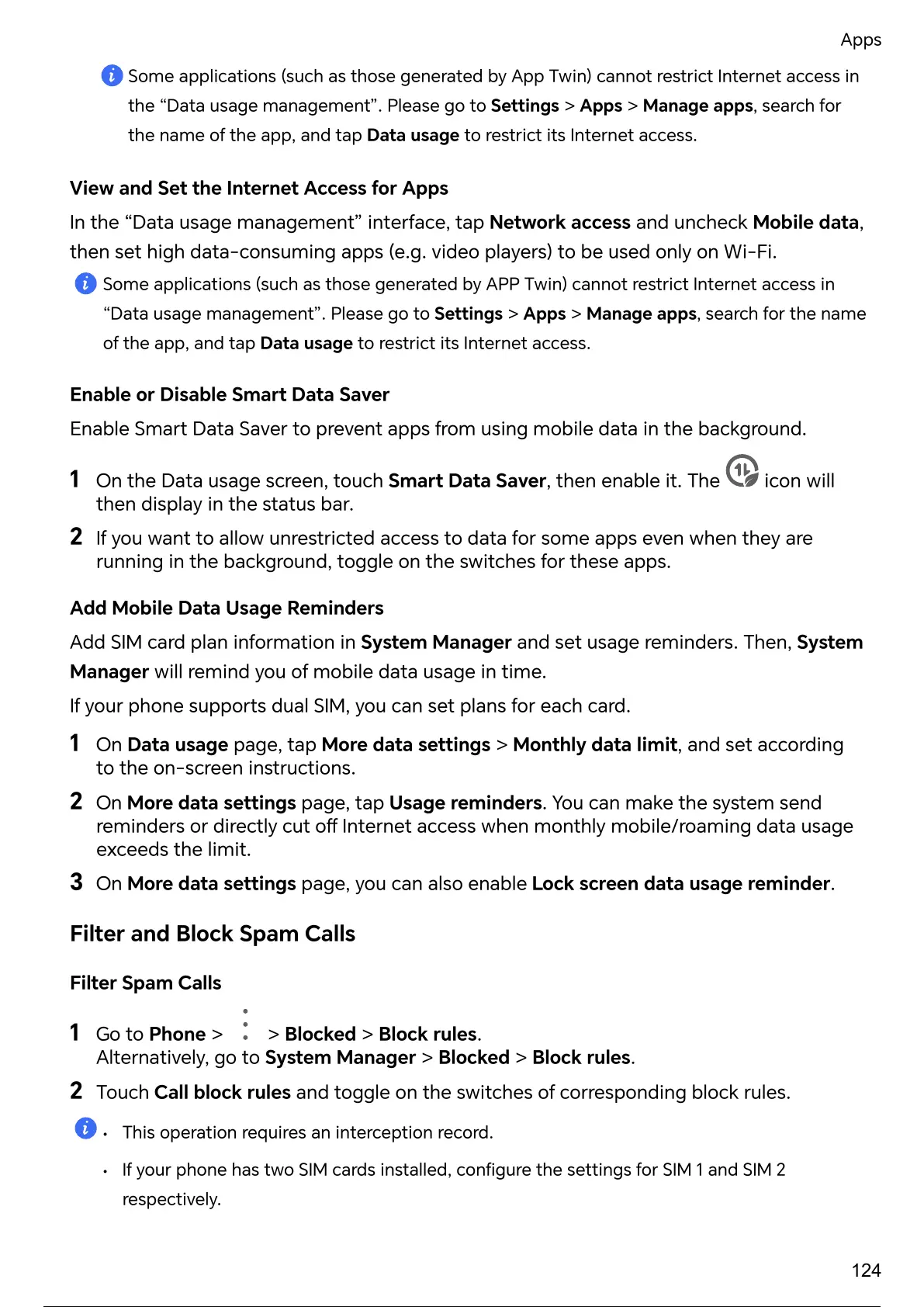 the “Data usage management”. Please go to Settings > Apps > Manage apps, search for