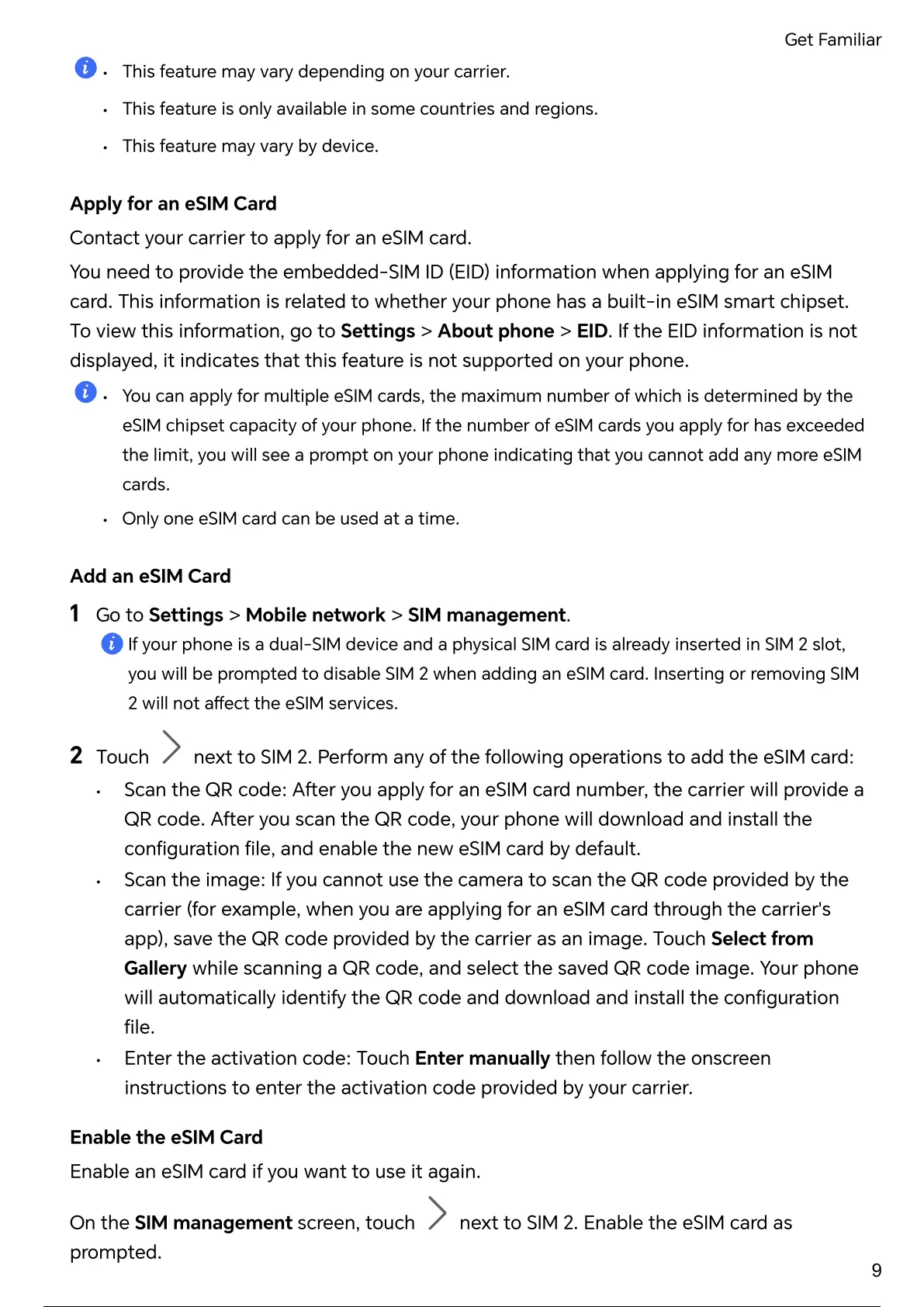 • Only one eSIM card can be used at a time.