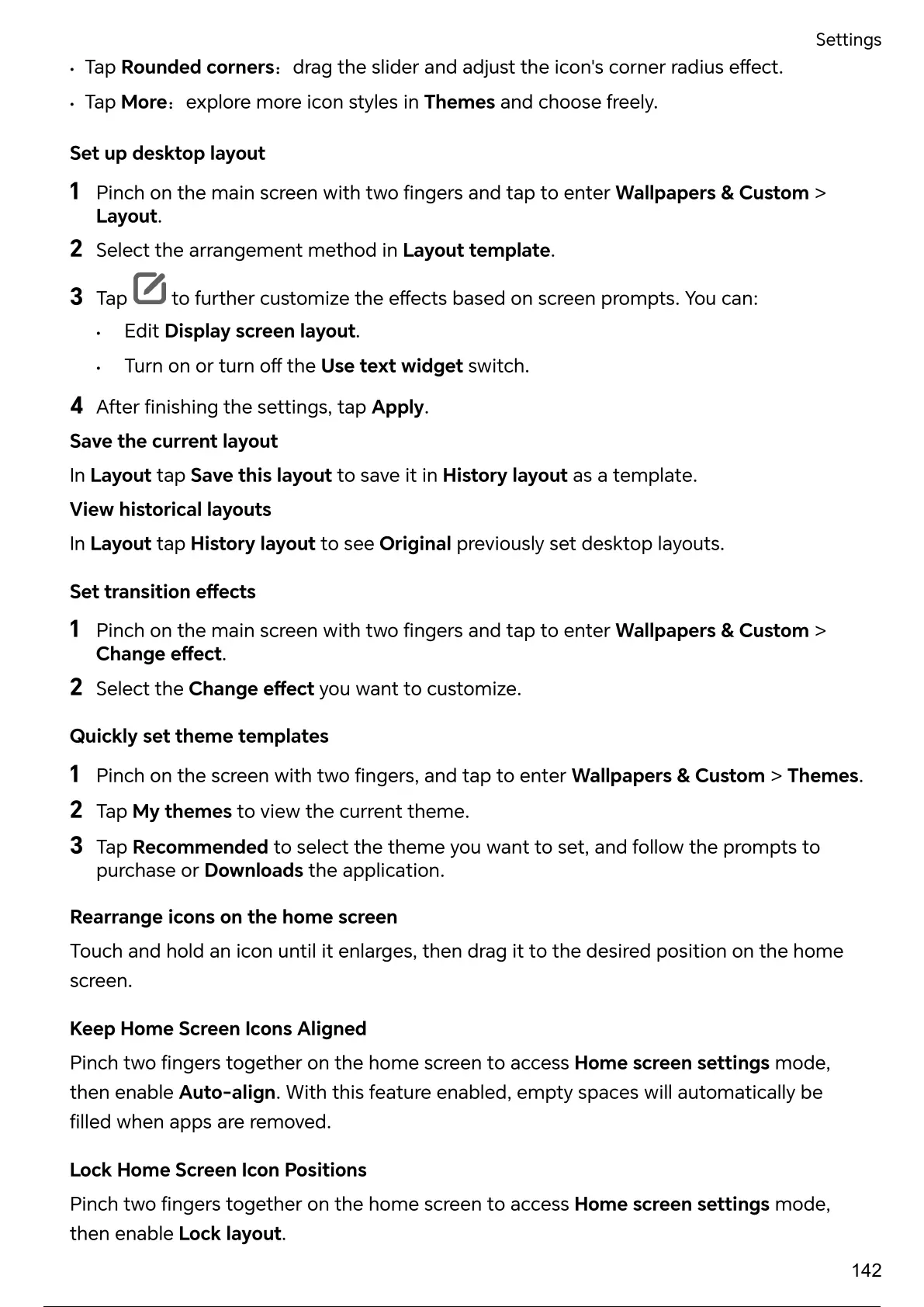 Touch and hold an icon until it enlarges, then drag it to the desired position on the home