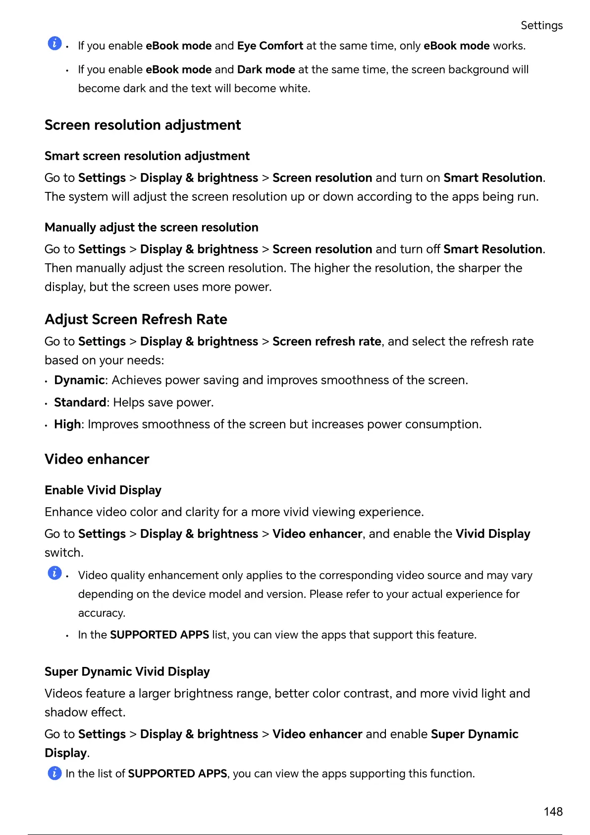 • If you enable eBook mode and Eye at the same time, only eBook mode works.