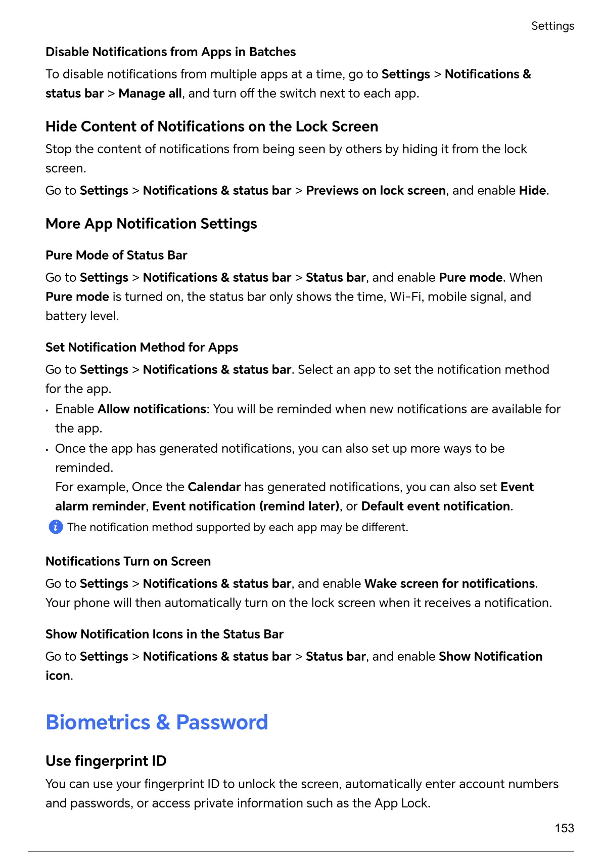 Go to Settings > & status bar, and enable Wake screen for .