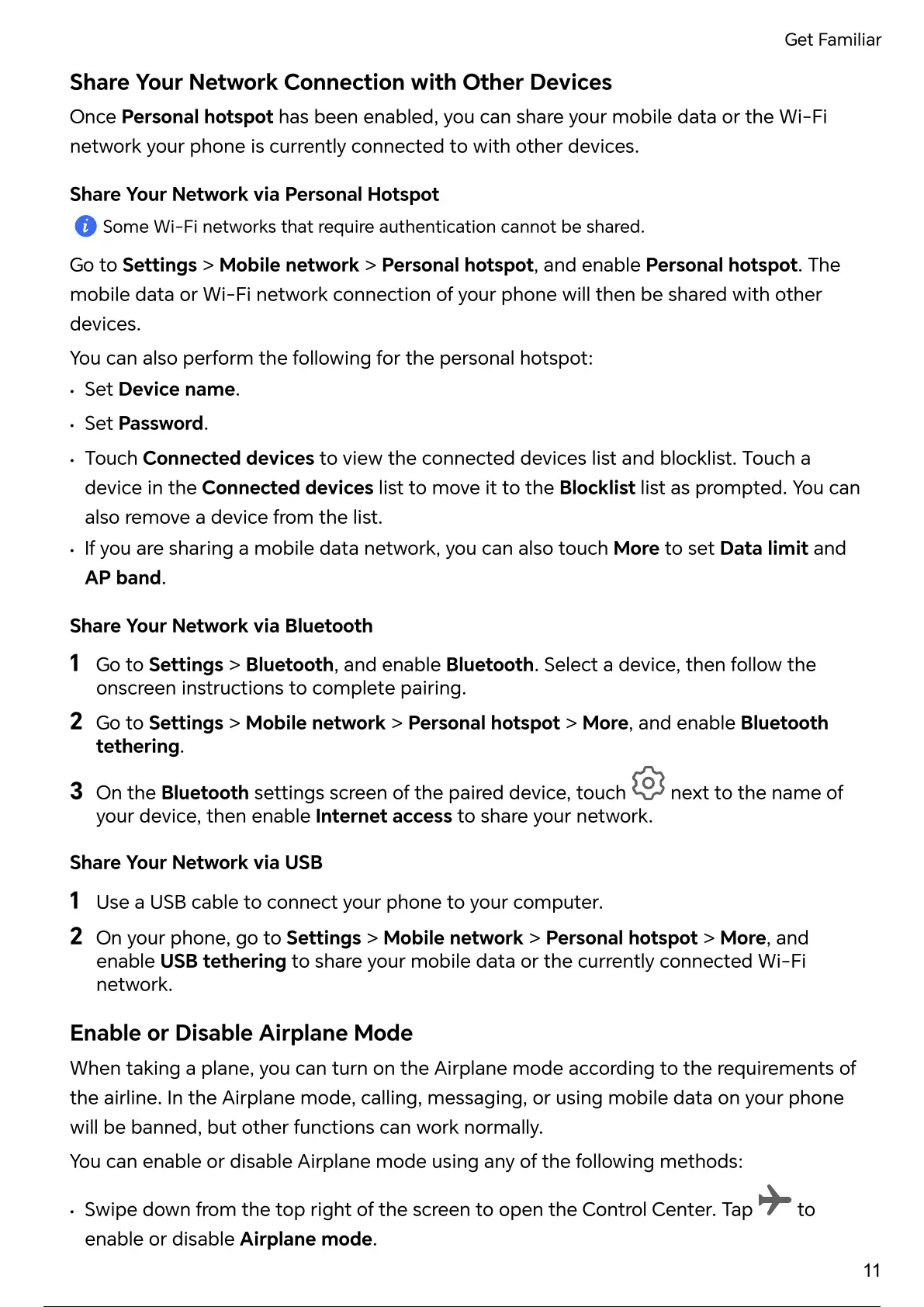 2 On your phone, go to Settings > Mobile network > Personal hotspot > More, and