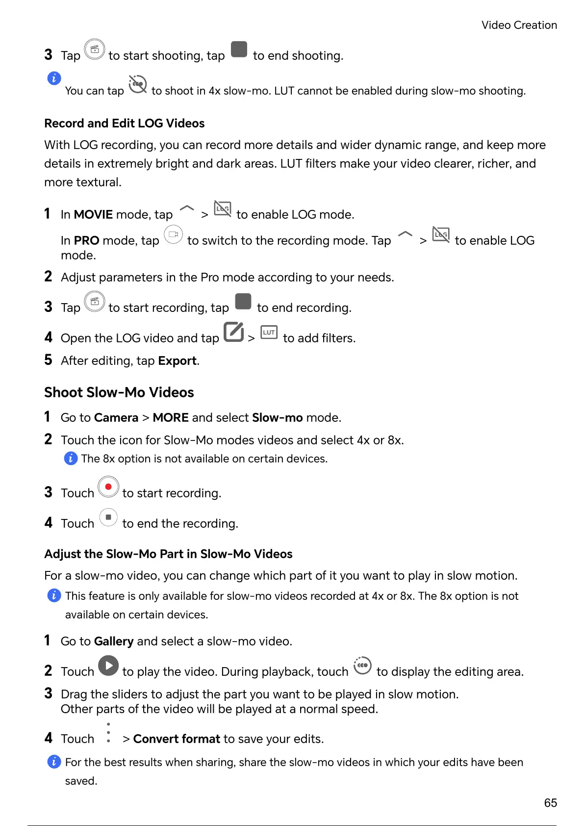 You can tap to shoot in 4x slow-mo. LUT cannot be enabled during slow-mo shooting.
