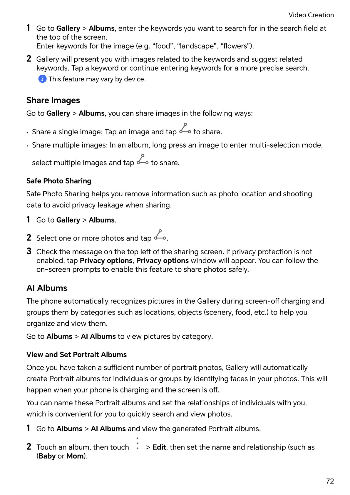 • Share multiple images: In an album, long press an image to enter multi-selection mode,