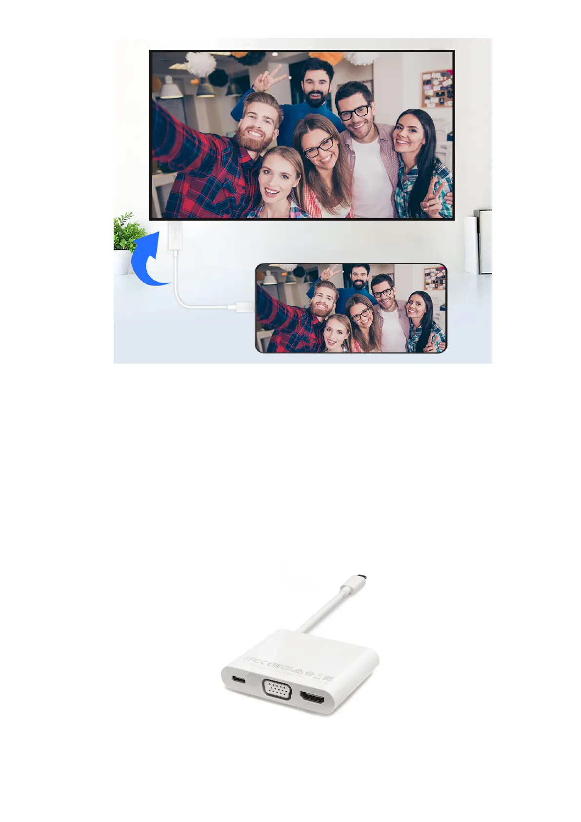 2 Connect your phone and the large display to the docking station, then connect the