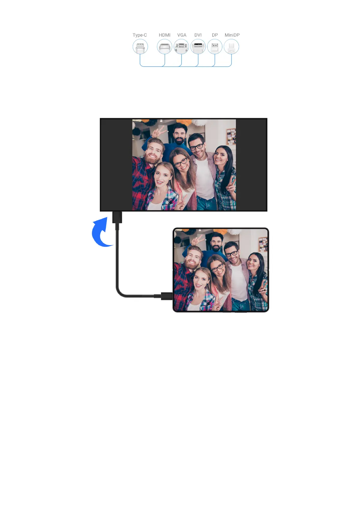 2 Connect the Type-C end to your phone and the other end to the large display.
